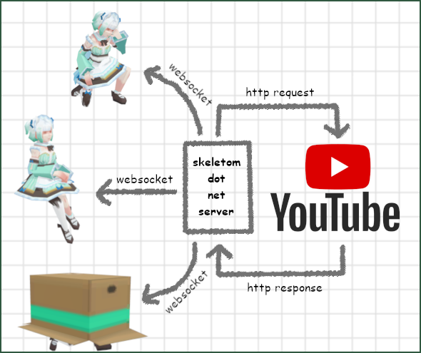 A diagram illustrating how our web server can handle many clients without increasing YouTube API quota consumption.